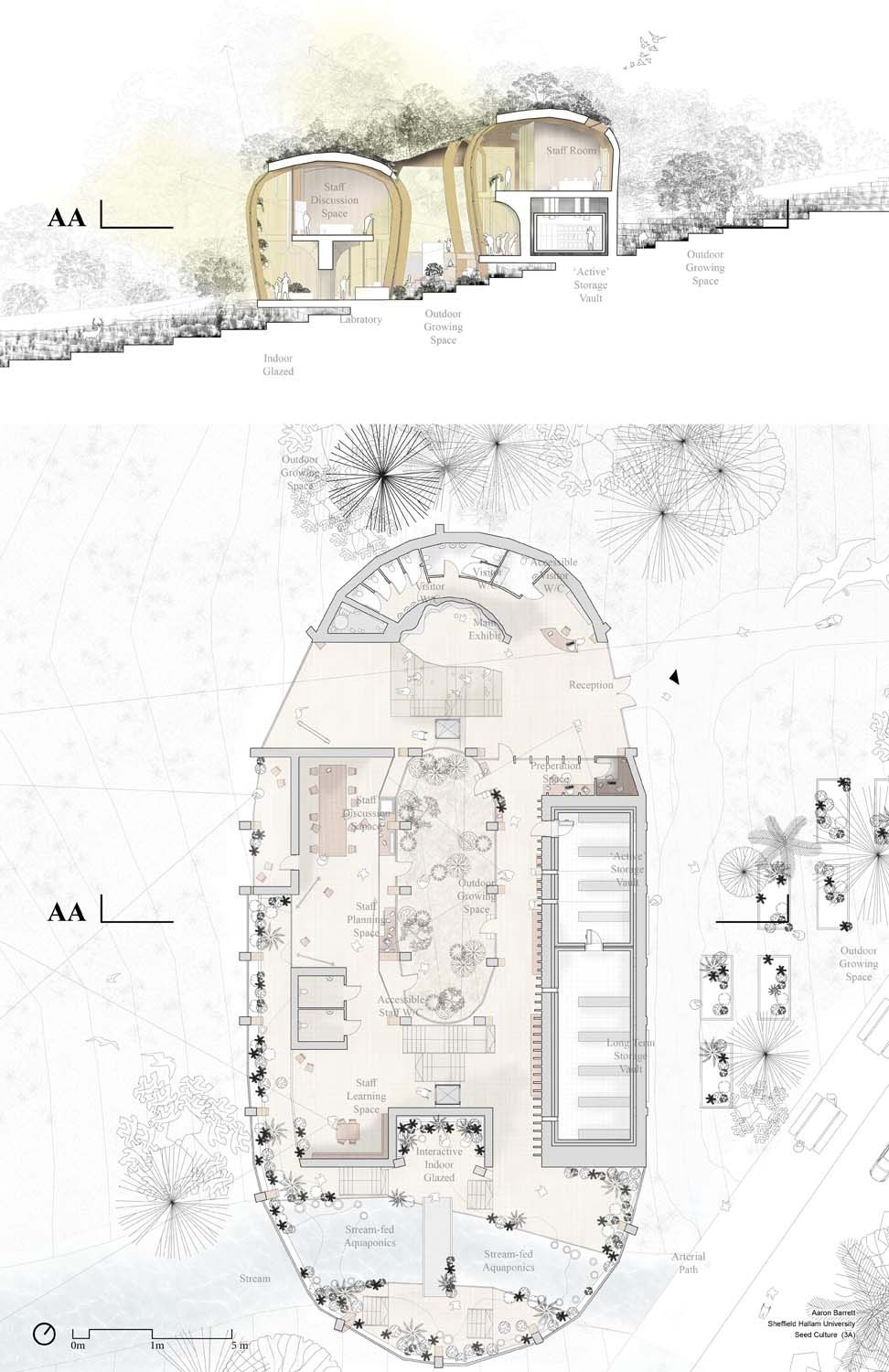 Situated on the Longshaw Estate, the Seed Bank connects within a larger landscape narrative and to opportunities for holistic experiences. Landscape features, languages and relationships are considered and diversified, next to a sustainable flora and fauna commitment strategy. Project designed in reference to BREEAM frameworks.