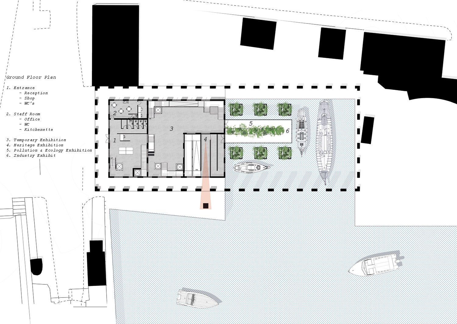With an emphasis on responding to the surrounding context and movement of people the aim of this project was to create a sequence of exhibitions each with a different experience that showcases issues with water today as well as how the river and docks were essential to Bristol’s history.